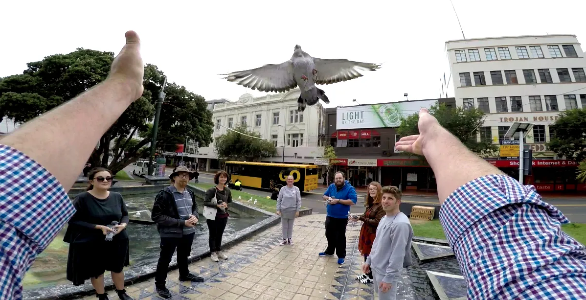 Adam: I was studying for my undergraduate degree in Industrial Design at Victoria University and was looking out of the window watching the Pigeons and I just felt drawn to them, like they had something to teach me. I started watching and following them around and I realized – wow I don’t know anything about these beings who are all around me. When I started reading about them I realized how fascinating they are, the fact that they are feral – they are “wild” after being in a state of “domestication” and the fact that humans intentionally introduced them to cities (as a food source, status symbol and for communications), before we awarded them the status of “pest”. This is such a common pattern across so many human endeavours – do something, make a mess and then blame someone or something else for it. Following pigeons led to a little guide to human-pigeon relationships and later the performance Hello Pigeons where my collaborator Kedron Parker and myself took Wellingtonians to a local park and introduced them to the local pigeons as well as some domesticated ones